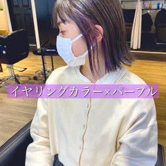 ミディアム 20代 インナーカラーバイオレット 卵型