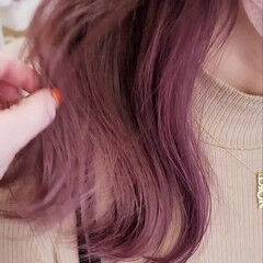 韓国ヘア 卵型 20代 インナーカラーパープル