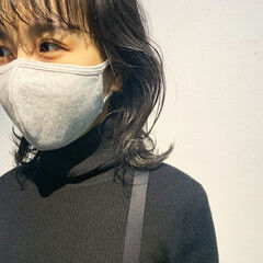 ミディアム ナチュラル かきあげバング 韓国ヘア