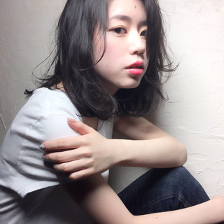 暗髪 ラフ ミディアム ガーリー