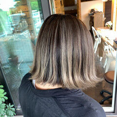 切りっぱなしボブ グレージュ エアータッチ バレイヤージュ