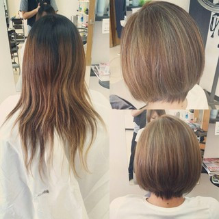 ハイライト ミルクティー アッシュ ボブ