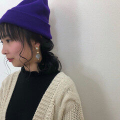 ミニボブ 帽子アレンジ ナチュラル ゆる巻き