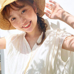 ナチュラル 麦わら帽子 ヘアアレンジ 帽子アレンジ