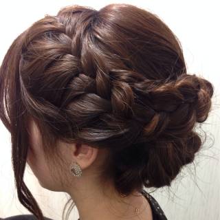 顔にかかる位置に編み込みがあると、パーティーにピッタリな華やかなヘアアレンジに仕上がります。