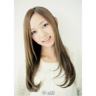 前髪なしのロングヘアは、顔の表情がより明るく見え、すっきりとした印象に。