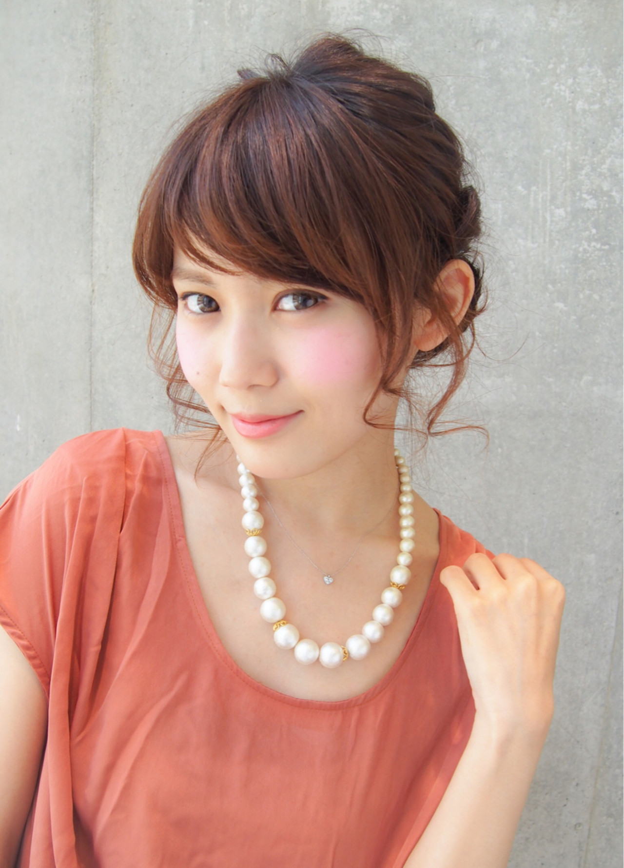 おくれ毛もアップスタイルを可愛くみせるポイントですよ。