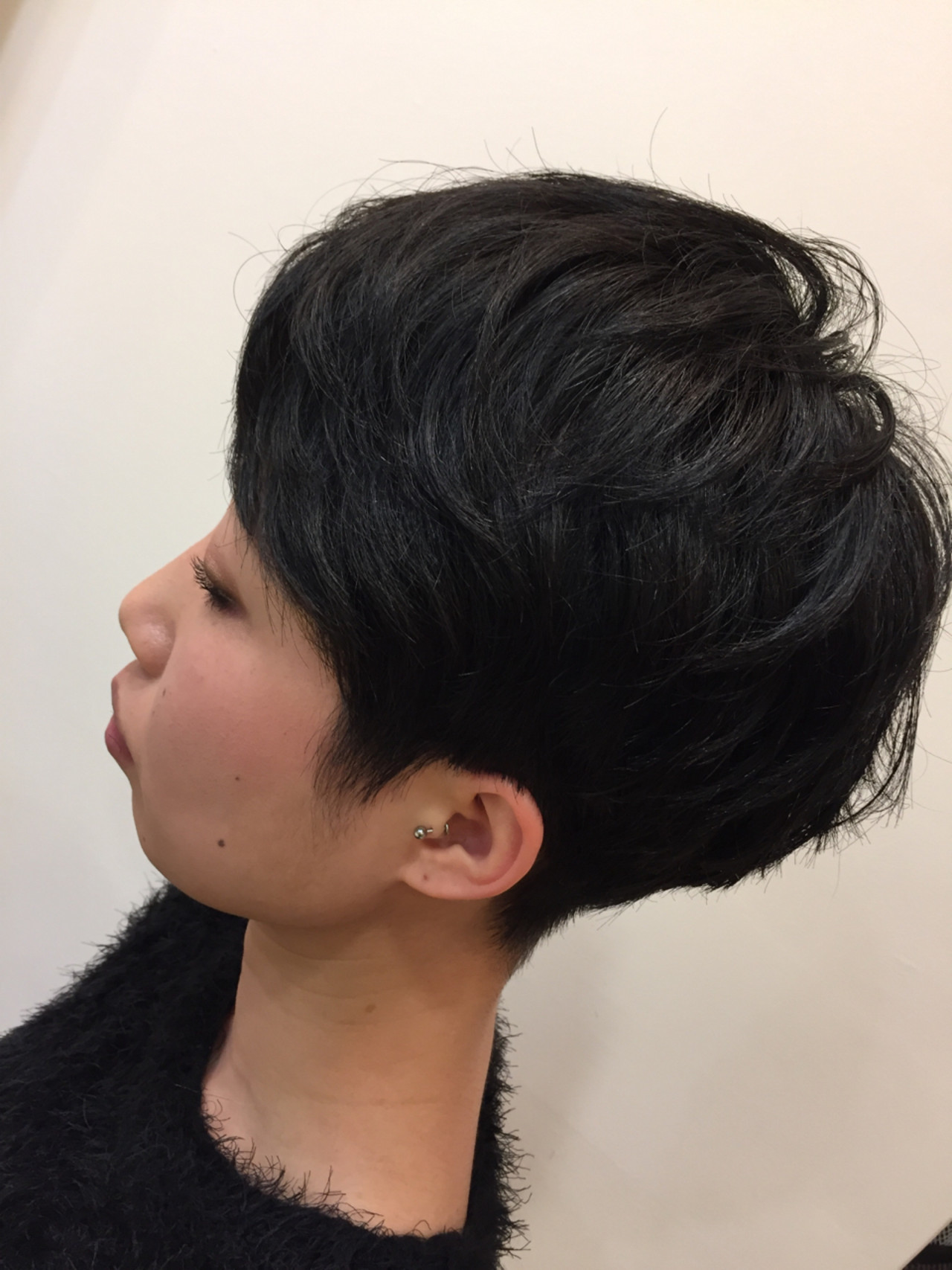 黒髪のベリーショートは、パーマをかけてもすてきに見えますよ♪