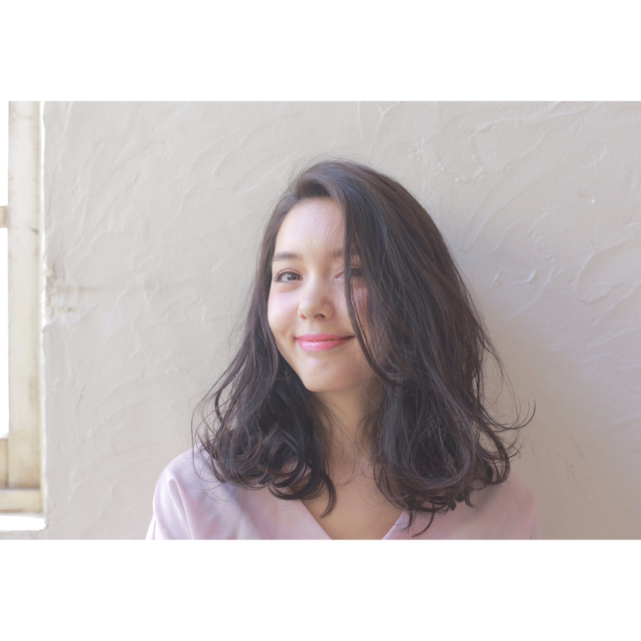 ゆるふわな黒髪が色っぽい、ミディアムヘア。
