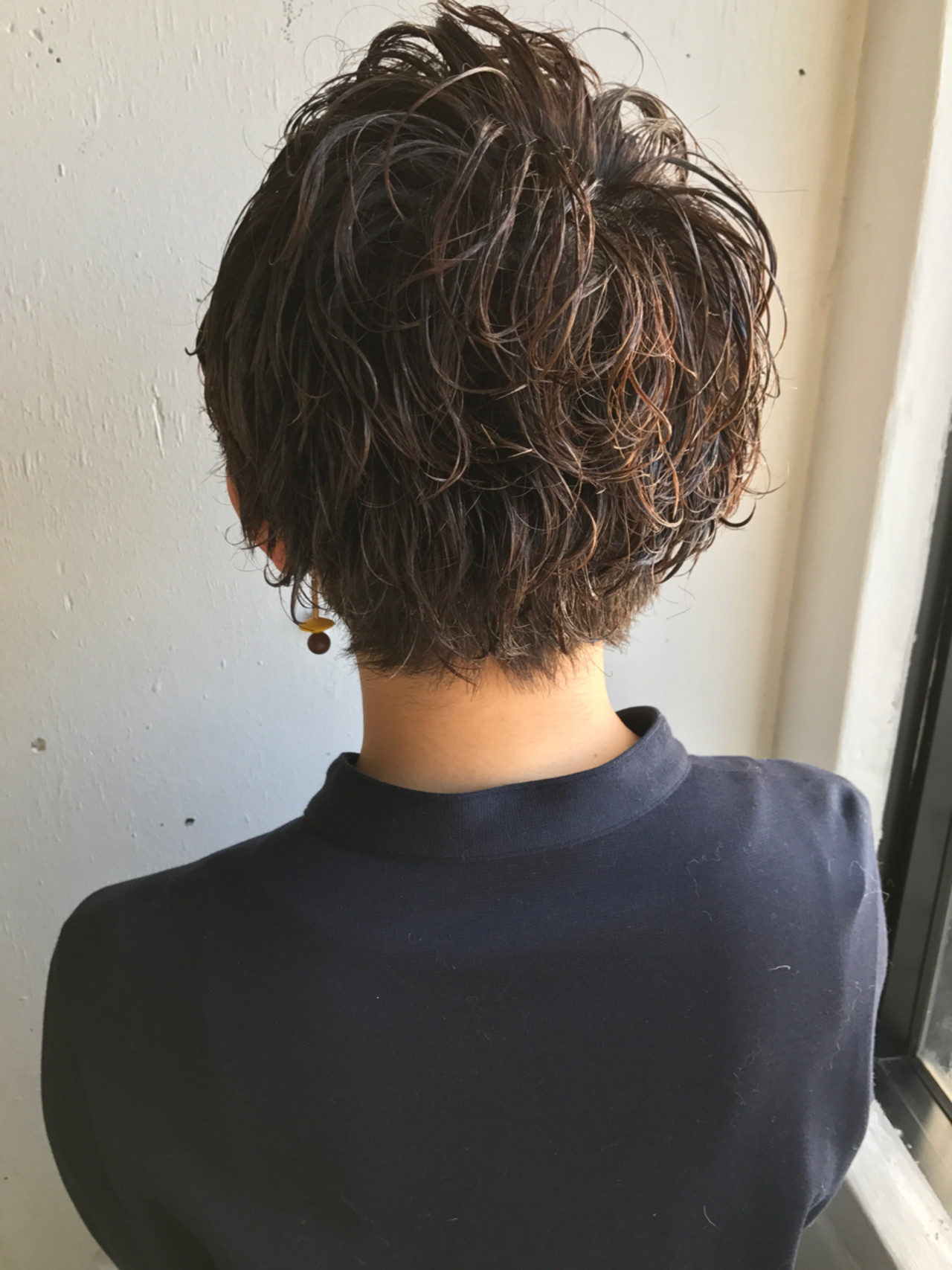 パーマをプラスしたベリーショートスタイルは、ウェットな質感のワックスと相性ぴったり!