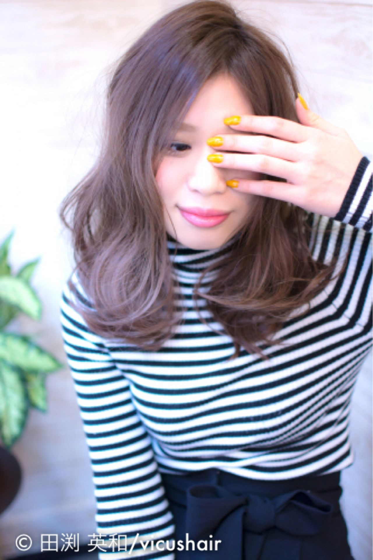 ラベンダーブラウンにすることで、透明感が出て、アンニュイな雰囲気になっていますね♪