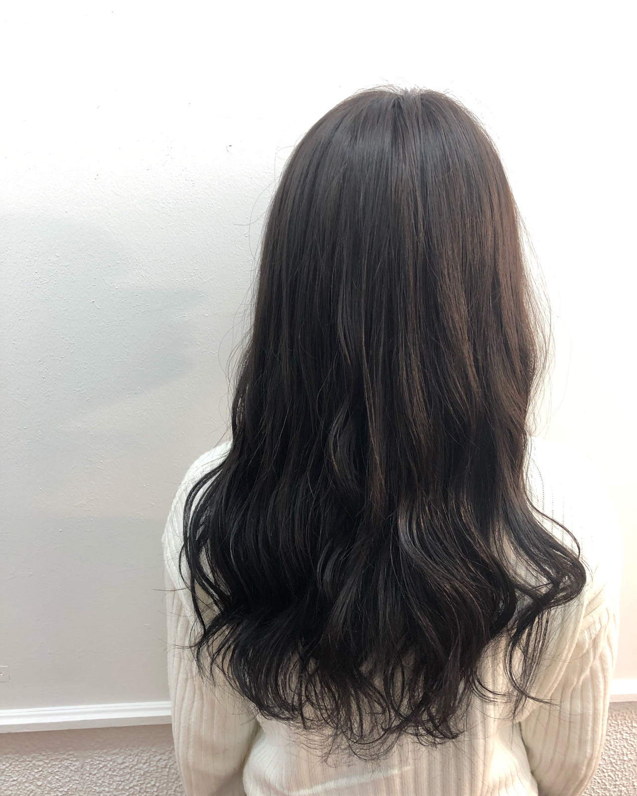 カラー初心者にもおすすめするダーク系のグレーヘア♡パッと見はブラックカラーと違いがあまり感じられないのですが、光に当たるとグレーカラーがキラキラ光ってツヤ感満点のヘアになります。オフィスでも使えるカラーです。