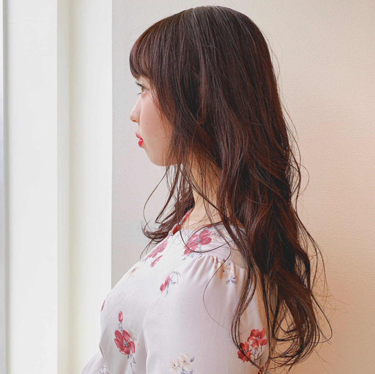 大人っぽさが魅力のロングのウェーブヘアです。ムースをつけるときは、ウェーブをきれいに出して、仕上げに指でつまむようにほつれ感を出すと◎。