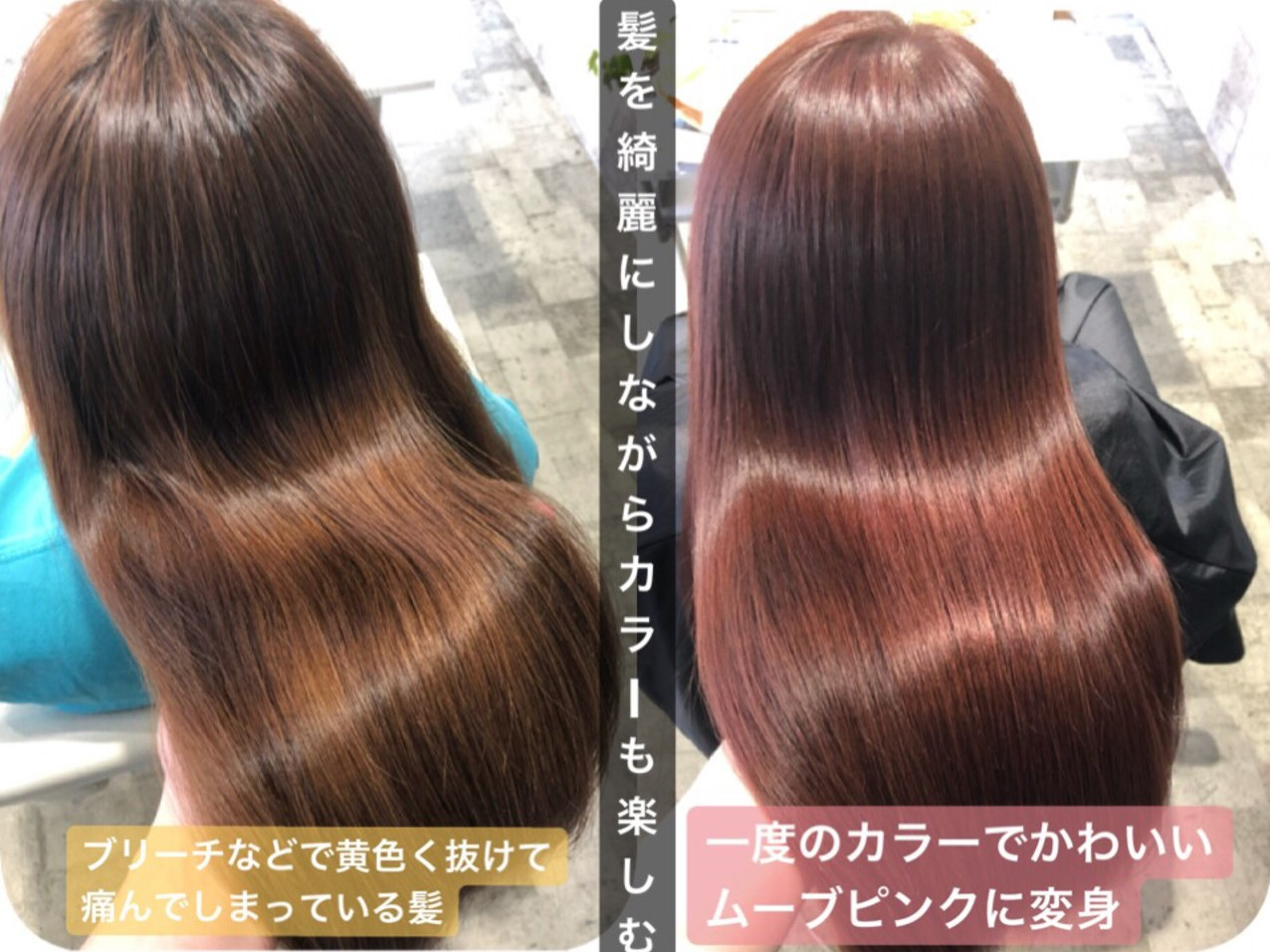 温かみのあるピンクブラウンが秋にぴったりのストレートロングヘアです。ハイトーンカラーはブリーチすることで綺麗に発色し、透明感のある髪になります。スタイリストの安達瞭さんは、ヘアケアが得意です。パサつきや広がり、くせ毛など、髪の悩みをしっかりとカウンセリングし、一人一人に合ったダメージケアを提案してくれます。「hair salon couper」は愛知県内トップのヘアケアサロンとして、県外からも多くの女性が訪れる人気のサロンです。独自の特殊処方により、従来の髪質改善を超えるダメージケアで、日々のスタイリングを楽にすることができます。