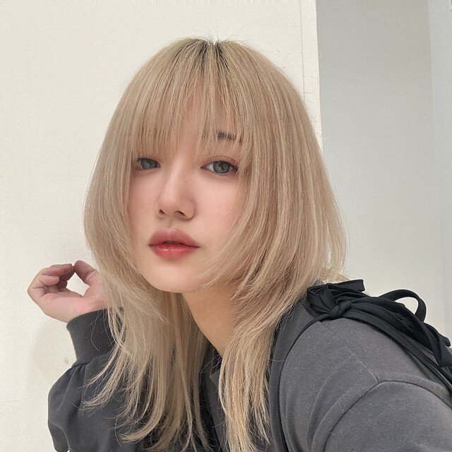 襟足のくびれが特徴的なショートウルフは、お洒落上級者に見えること間違いなしのスタイル。長めの前髪を合わせることで、気になる顔周りをカバーしつつ、どこかミステリアスな雰囲気をプラスします。ペールベージュの柔らかさが、ウルフの個性をマイルドに見せてくれるので、挑戦しやすい組み合わせです。