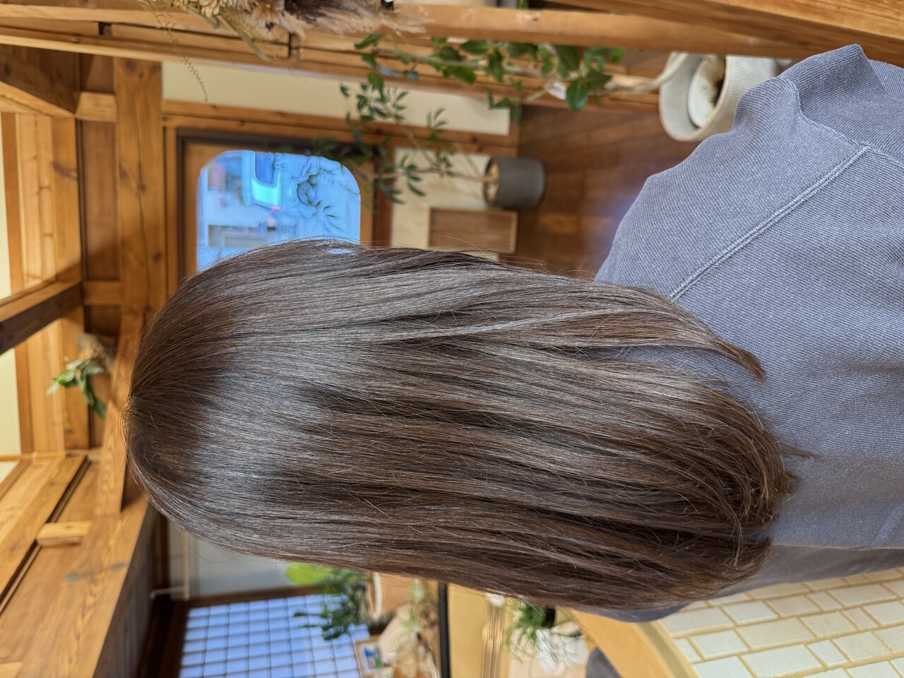カット+カラーはお客様の要望に加えてお家での再現性と持続性を高めた施術をします。 システムトリートメントの特徴である 『生まれたままの素髪質感へ導く』 アイロンしなやかで艶のある髪に憧れている方、ナチュラル好きな方にオススメです。