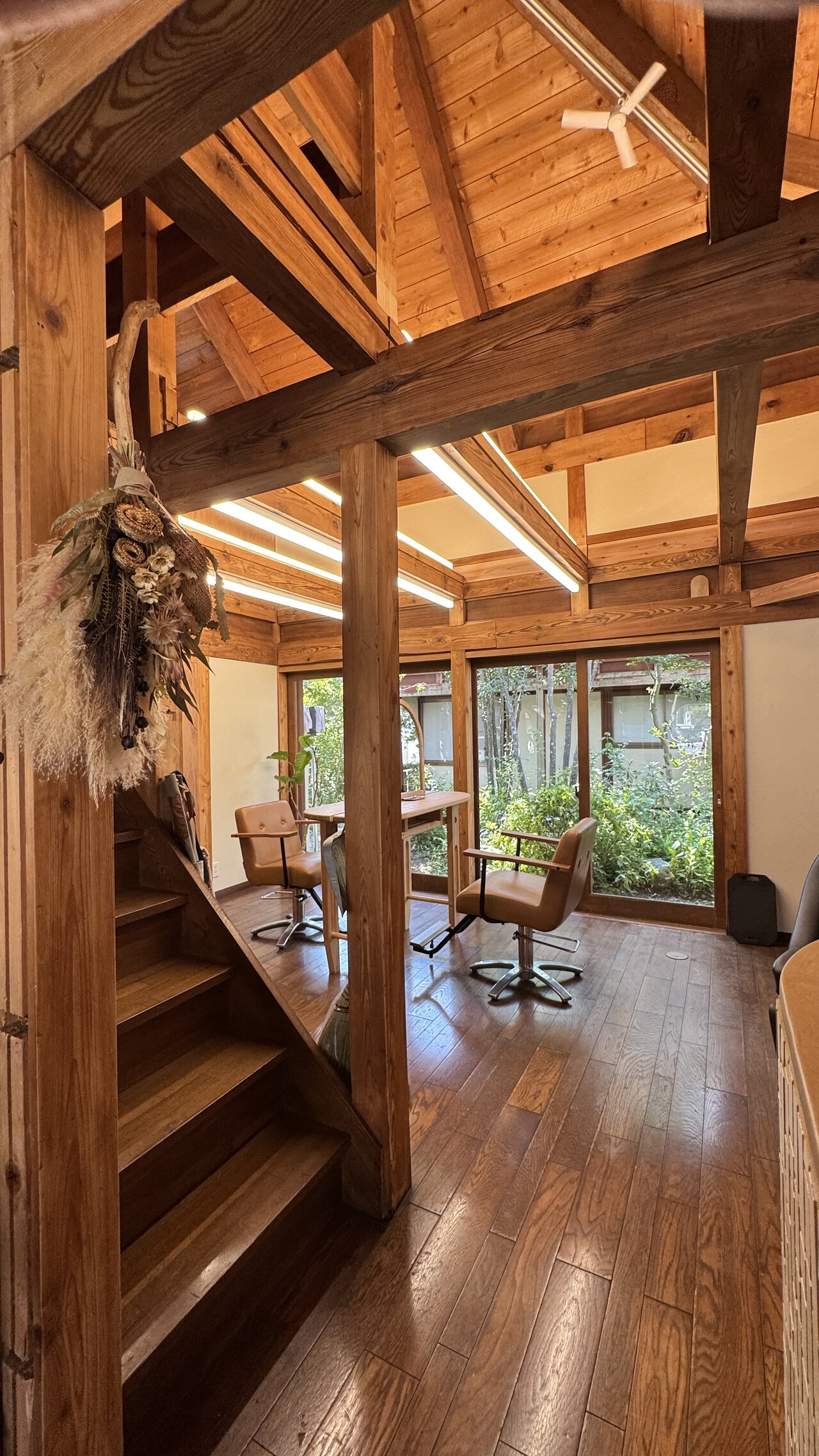 古民家リノベーションをした落ち着いた空間で、できるだけオーガニックの自然由来成分のヘアケア剤・スタイリング剤にこだわっています。