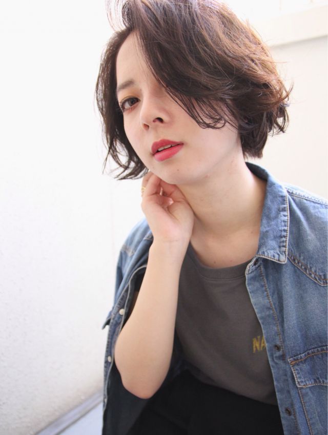 ナチュラル ウェーブ ボブ ヘアスタイルや髪型の写真・画像