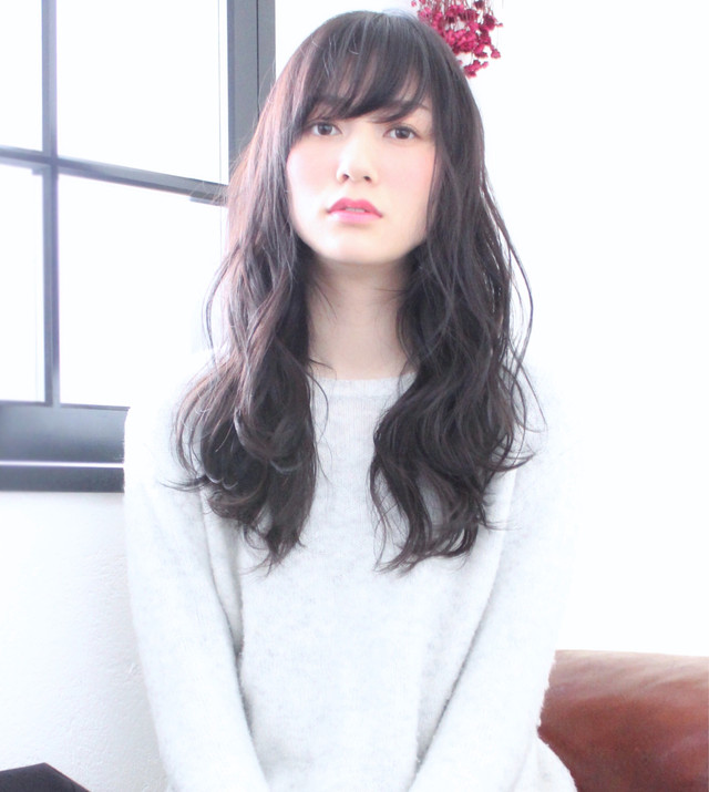 黒髪 ゆるふわ パーマ ナチュラル ヘアスタイルや髪型の写真・画像