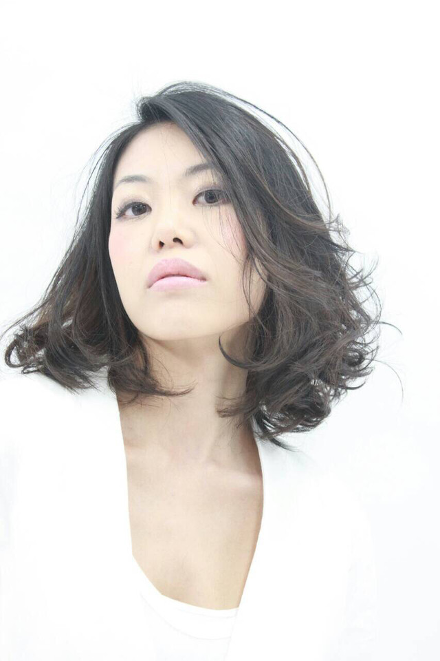 黒髪 モード ミディアム ヘアスタイルや髪型の写真・画像