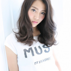 ミディアム ナチュラル 暗髪 グレージュ ヘアスタイルや髪型の写真・画像