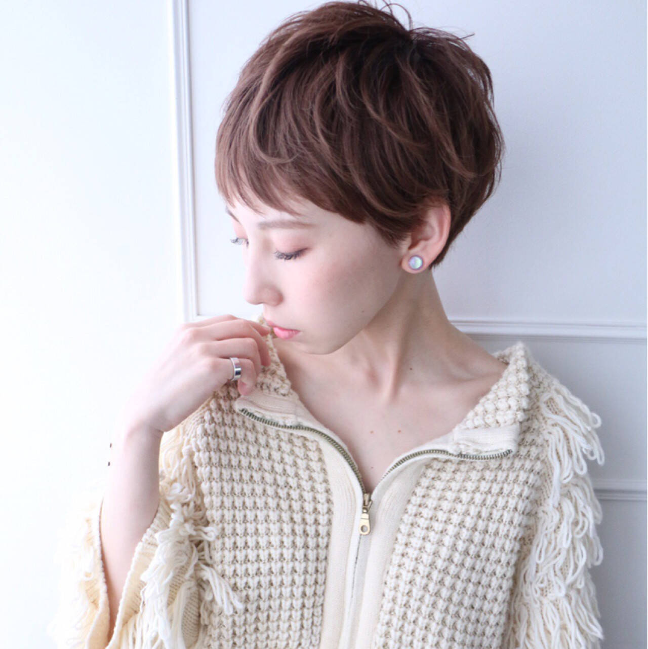 ミルクティー ナチュラル ショート 外ハネ ヘアスタイルや髪型の写真・画像