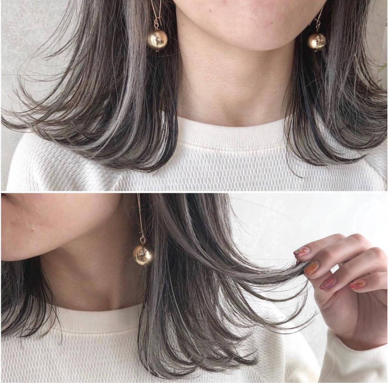 ミディアム 外国人風カラー ハイライト グレージュ ヘアスタイルや髪型の写真・画像