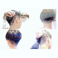 ブリーチカラー ショートヘア モード 刈り上げショート