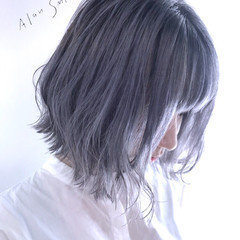 ボブ グレーアッシュ 波ウェーブ シルバーアッシュ