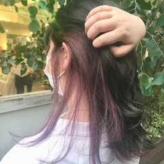 ラズベリーピンク セミロング ガーリー ブリーチカラー ヘアスタイルや髪型の写真・画像