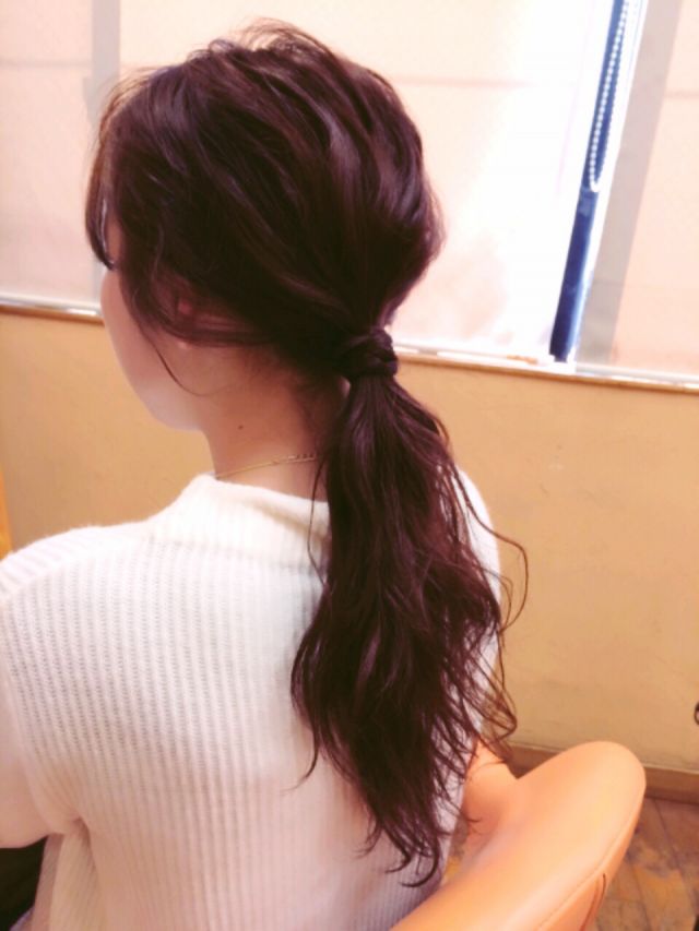 ミディアム ローポニーテール ヘアアレンジ 波ウェーブ