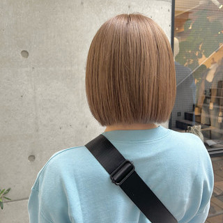 切りっぱなしボブ ミニボブ フェミニン オン眉 ヘアスタイルや髪型の写真・画像