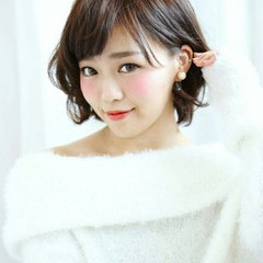 ショート ボブ ゆるふわ 耳かけ ヘアスタイルや髪型の写真・画像