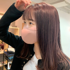セミロング ピンクブラウン 暖色 ブリーチなし