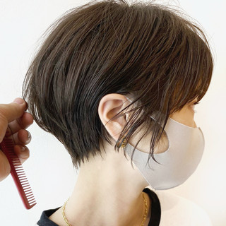 大人可愛い ショートヘア ナチュラル 切りっぱなしボブ ヘアスタイルや髪型の写真・画像