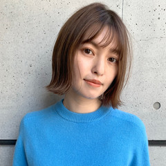 切りっぱなしボブ イヤリングカラー 20代 ナチュラル