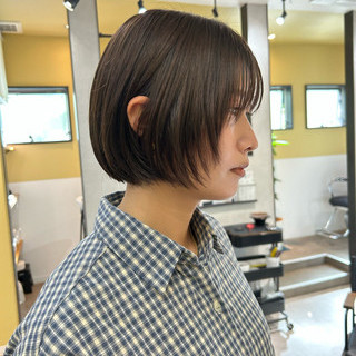 卵型 切りっぱなしボブ ミニボブ 20代 ヘアスタイルや髪型の写真・画像