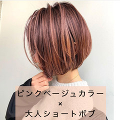 ナチュラル 30代 オレンジベージュ ショートボブ