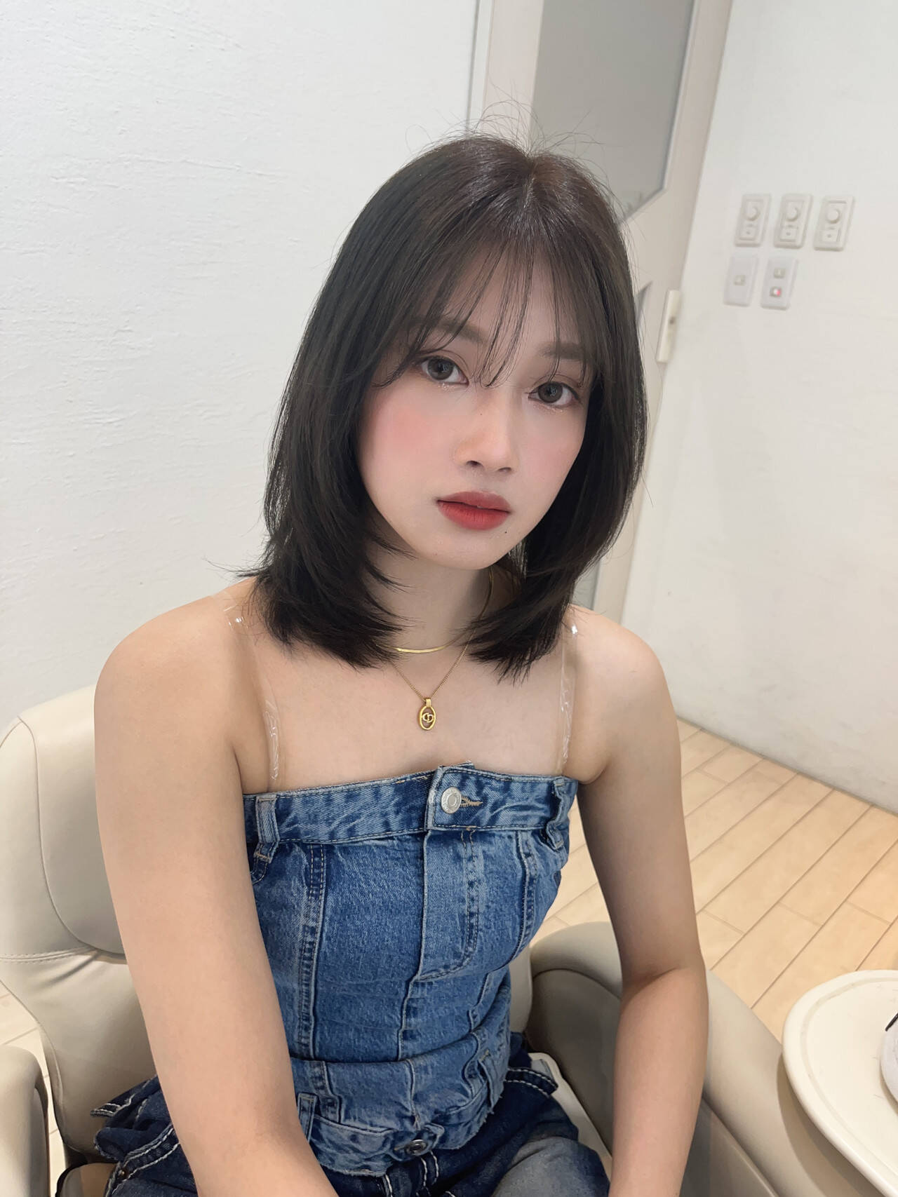 大人ミディアム レイヤーカット 韓国ヘア 丸顔