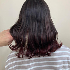 ピンク インナーカラー セミロング ハイライト