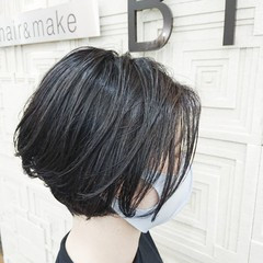 ショートヘア 切りっぱなしボブ 大人カジュアル 40代