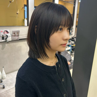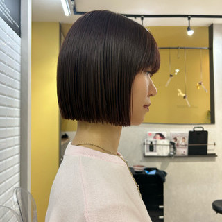 ナチュラル 切りっぱなしボブ レイヤーボブ 20代 ヘアスタイルや髪型の写真・画像