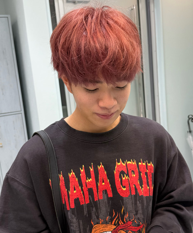 ナチュラル ピンクカラー 卵型 インナーカラー