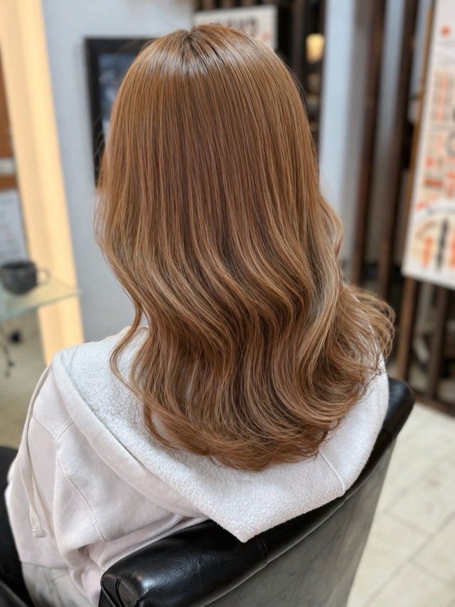 ベージュ ブロンドカラー 丸顔 ミルクティーベージュ