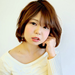 ミディアム パーマ 丸顔 ヘアスタイルや髪型の写真・画像