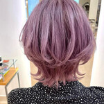 ブリーチカラー 外ハネボブ ラベンダーグレージュ 30代
