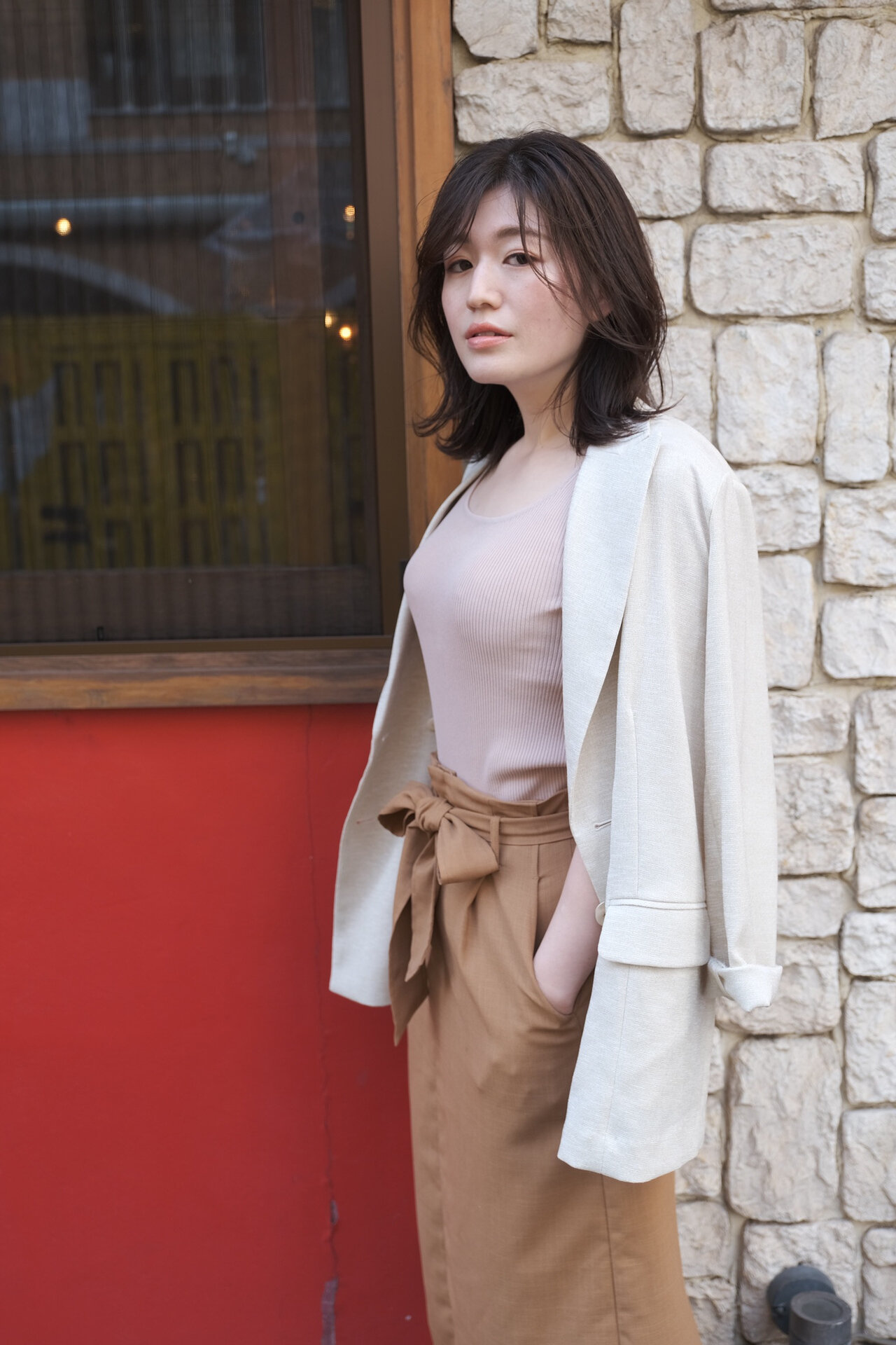 大人の雰囲気に仕上げる為にくびれのある外ハネにしています。 イルミナカラーのカーキ系グレージュで暗髪でも透明感のある仕上がりにします。